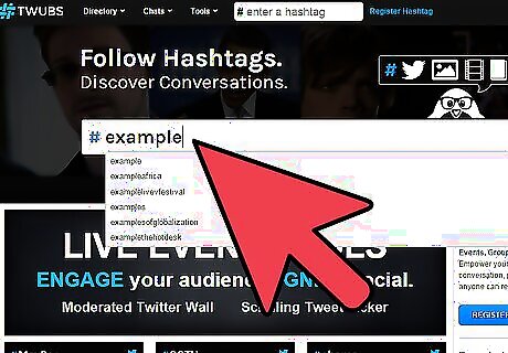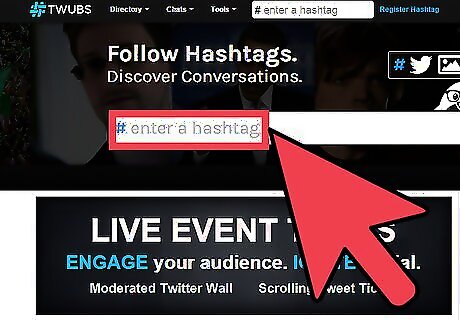 Input the hashtag word. In the search box right at the top center of the page, type the hashtag word you’d like without the # sign.