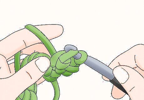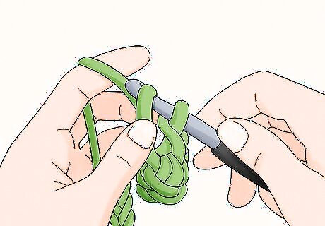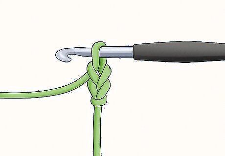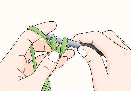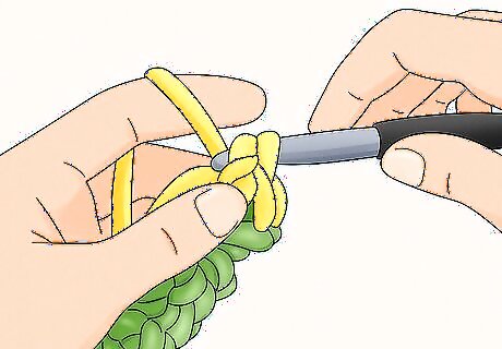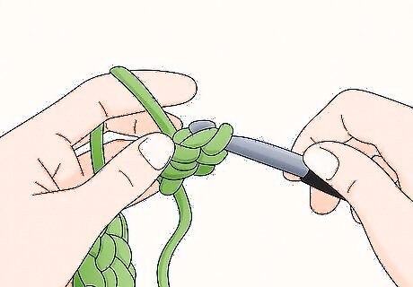 Make a slip knot and slide it onto a US size L/11 (8 mm) crochet hook. If you're using 2 colors, take the main color for your blanket and pull about 6 inches (15 cm) of yarn from the skein. Wrap the yarn around your fingers to make a loop and pinch it so the working yarn hangs behind. Slide your crochet hook through the loop and grab the working yarn. Then, pull so the slip knot is firmly on your hook. If you're only using 1 color for the entire blanket, don't worry about the instructions for working with a contrasting color.