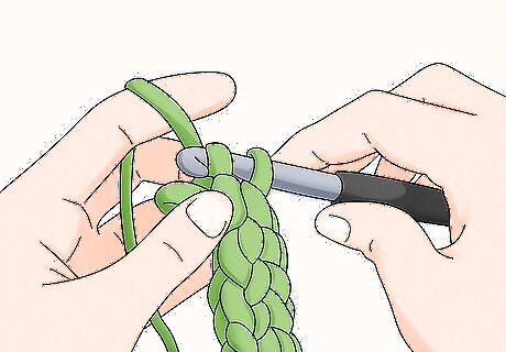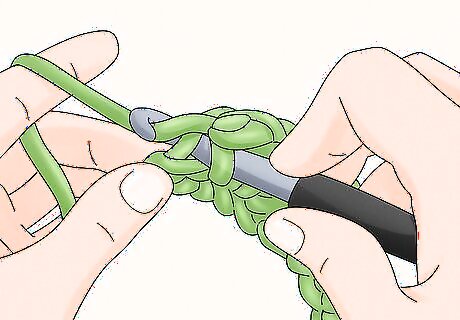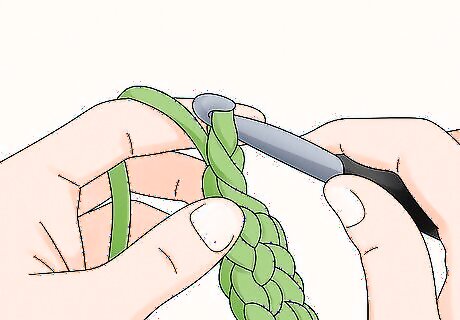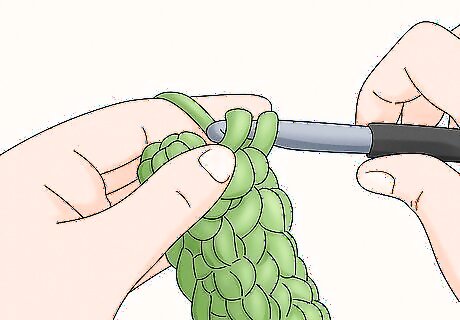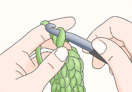 Make 2 single crochet stitches into the last stitch of row 1. Once you've almost finished the first row, work 2 single crochet stitches into the last chain stitch on your hook. Then, turn your work so you can start row 2.