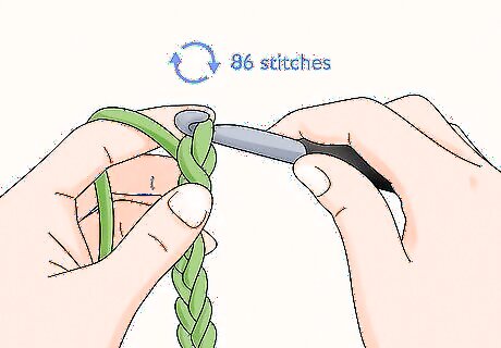 Chain 86 stitches to start the chevron blanket. For your first chain, wrap the yarn around your hook and pull it through the loop. Keep doing this until you've chained up a total of 86 stitches. This is the foundation you'll use for crocheting the blanket. 86 might seem like a lot of chain stitches to count, but it goes quickly!