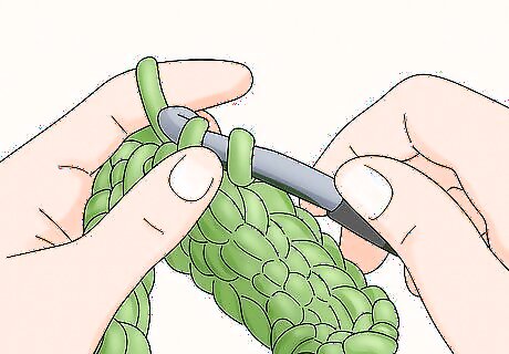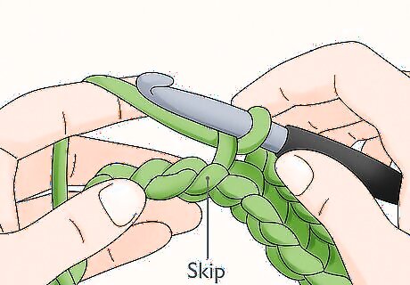 Skip 1 stitch and make 2 single crochet stitches into the second chain. Don't work the chain that's closest to your hook. Instead, skip it and put your hook in the following stitch. Grab the working yarn and pull it onto the hook. Then, wrap the yarn over and pull the hook through both loops to make a single crochet (SC) stitch. Make another single crochet stitch into the same space.Tip: If you'd like to give the blanket a slight ridge texture along the chevron lines, crochet into the back loops instead of into the stitch itself.