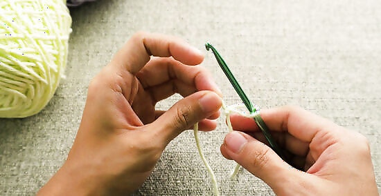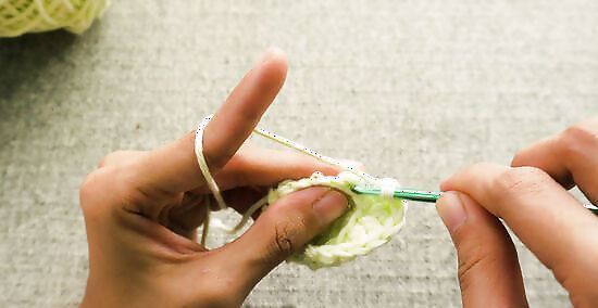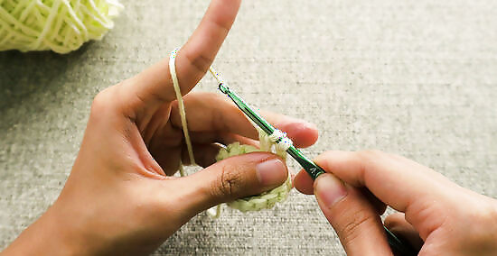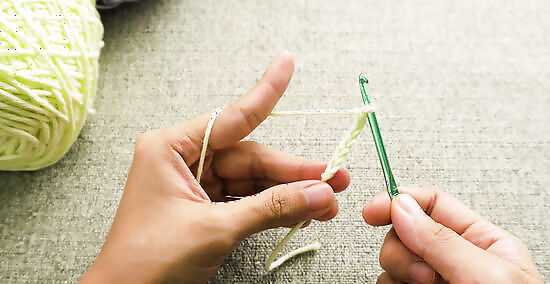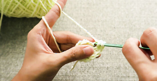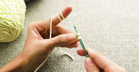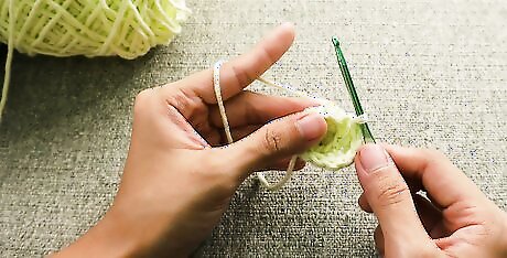 Make a slipknot. Loop the yarn around your finger twice and then pull the first loop over the second loop. Pull on the free end of the yarn to tighten the knot. Then, slide the loop onto the crochet hook and tug the tail to tighten the loop some more.