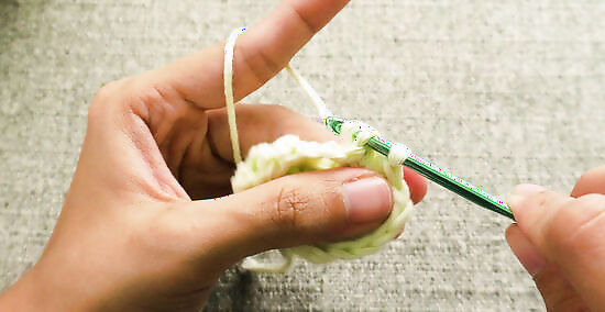 Chain 1 or 2 depending on the stitch you are using. Begin the new round with a chain of 1 for a single crochet stitch round or a chain of 2 for a double crochet stitch round.