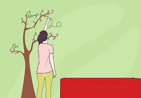 Decorate your home with words. There are many ways that you incorporate words into your everyday life and home décor. There are statue signs made from single words that say beautiful things like "love", "passion", and "welcome". You could also find pictures and paintings that include words as a key element of the image, with words forming a meaningful statement or graphic. Then there are doodles, that often include words as part of the overall doodle. For your fridge or other magnetic spaces, purchase magnetized words that can be rearranged constantly on the fridge; don't limit these to English alone but add other languages and mix them up! The more words and the more connections you make, the better. If you're handy with crafts, why not consider making some items that feature words? You could sew a cushion with words on it, cross stitch a sampler with your favorite words, or make a quilt of words. If you enjoy drawing or painting, make your own word-infused painting or drawing.