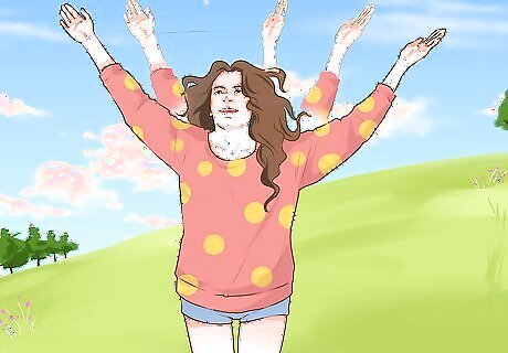 Utilize both relaxed and jerky movements. Hip hop dancing relies a lot on the contrast between loose, flowing moves and quick, jerky ones. Generally, the hips are kept loose while the arms and hands perform sudden, dramatic movements, though quick hip moves are not uncommon either. The first step to making your dancing more hip hop-like is to embrace this contrast.