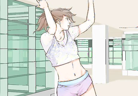 Copy some of the moves in "7/11". Beyoncé's video for "7/11" doesn't include one or two iconic dance routines, but instead includes a variety of shorter, but nonetheless appealing dance moves. This makes it a good video to copy from. Some of the moves include: Clap your hands above your head as you bounce forward with your feet together. Bend yourself back and to the side by leaning your torso backwards and bending your knees. Rock your arms in a fluid, rolling movement up and down while you're bent back. Spread your feet very far apart and get your torso low. Move your hips from side to side as you do.