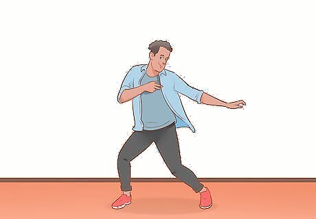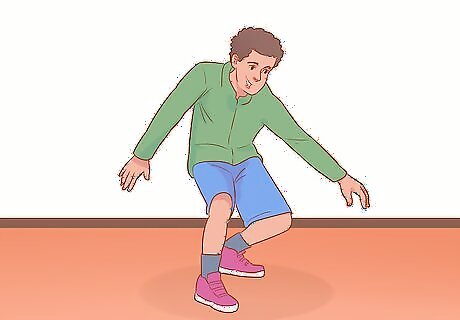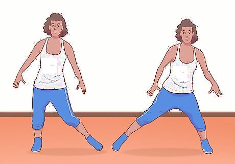 Try a variation of the step-touch to mix things up. Start with your feet together, step to the side with your left leg, then bring yourself back to the original stance right away. Do the same thing with your right leg. Only one leg should be moving at a time and you should always return to the original stance of having your knees bent and feet together. Don’t be afraid to turn your hips out as you move your feet. The less stiff you are, the better your dance moves will look! As you practice these moves, always stay on your toes so you can move quickly.