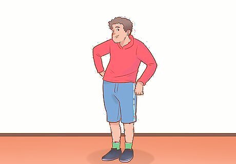 Kick your leg out to do a basic kick ball change. Stand with your feet shoulder-width apart and kick your right leg out. Then, bring your leg back and cross it over your left leg. Finally, step your left leg back so that it’s shoulder-width apart from your right leg but slightly behind it. To repeat the move, take your back leg and cross it front of your front leg. Then, step the original front leg to the side to return to the shoulder-width stance. When you first practice this move, do it slowly to get every motion down pat. As you get more comfortable with the move, speed up the pace. Your arms should move in front of your body as your feet cross in front of each other. They should return to your sides as you move back to the shoulder-width stance.