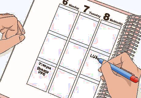 Schedule your dates in advance. It’s easy to get wrapped up in daily life at school. Since you won’t see your guy everyday, make sure to schedule time for each other after school or on weekends. Work out your other commitments so that you get to see him at least once a week, if not more. Having a plan to see each other will give you something to look forward to and make the relationship exciting. Try setting aside a specific time to see each other. For example you can plan to meet up on Saturday afternoons. If this doesn’t work for your busy schedule, you can make fun plans as time allows. If your relationship is long distance, consider booking bus or plane tickets far in advance. Ideally, you will see each other as often as possible, but that can be challenging if your schools are many miles apart. Reserve seats in advance to lower the cost of transportation. Make your dates special. Since you might not see each other often, do something special. Bring a him a present or dress up for date night.