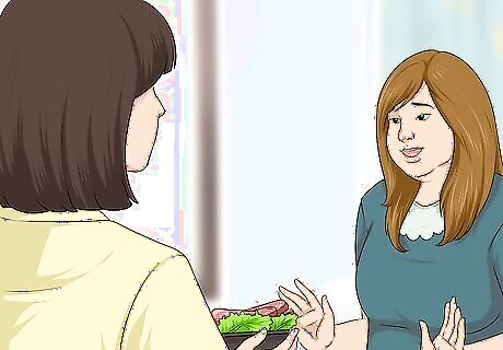 Acknowledge their feelings. People who are sabotaging your diet may do so because they feel guilty, do not understand your plight, or miss the "old you", or due to a combination of these. By understanding where they are coming from, you may be able to empathize with them. This will help you find the right words to make your confrontation a successful one. Changing your life may prompt other friends and family to feel like they should be doing the same thing, which makes them feel guilty. This can cause them to either consciously or unconsciously sabotage your diet. Ask them to join you. People who have never dealt with a weight problem simply do not understand how difficult it is to diet and lose weight. Help them see that your weight is a valid struggle and a serious issue. Others may miss the food experiences you both once enjoyed together, like dessert at restaurants and boutiques. Reassure them that your diet does not change how you feel about them.