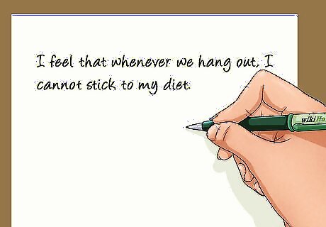 Prepare what you will say. Write down what you will say to the person and how you will say it. Remember to use “I” statements instead of “you” statements. Once you have written it down, practice your speech in front of a mirror. Instead of saying, “You are sabotaging my diet and weight loss,” say, “I feel that whenever we hang out, I cannot stick to my diet.” Keep your speech simple, succinct, and direct.