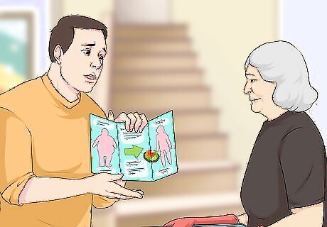 Educate your close friends and family. Help your close friends and family members, like your grandma who loves to bake pies, understand why you are making changes to your diet. Bring pamphlets from your doctor or a weight loss program to help them see and understand why you need to make changes. This will reinforce the idea that you are serious about making changes to your diet. Also, let close family members know which actions are helping or hindering your progress. For example, let your grandma know that offering pies is very tempting because you love them so much. Make sure close friends and family know that your diet choices are not a reflection of how much you love or hate them.