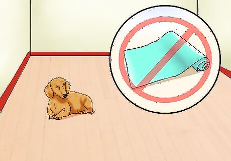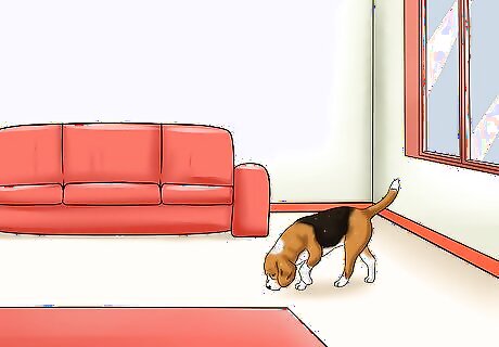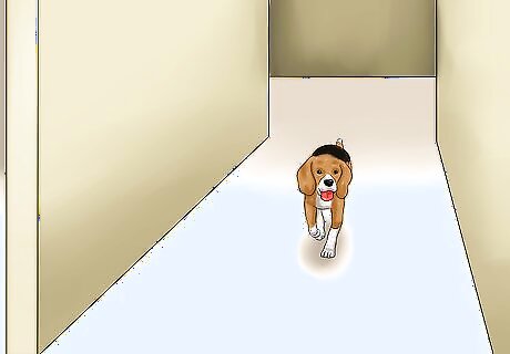 Avoid making big changes. If your dog can’t see, it will be a big help to him that you keep large furniture arranged in the same way. If your dog’s eyesight is starting to fade, he may try to walk around the house to get a good sense of where large obstacles are. Keeping a standard layout will help your dog’s confidence in his surroundings, making the visual impairment easier to handle. This doesn’t mean that you can’t rearrange furniture. Assuming your dog is in a positive mood, and you are willing to help him navigate around the new layout, you can lead guide him through it for a few days. Just avoid doing this too often, for both of your sakes. If you do rearrange things, take some time to crawl on the floor at your dog’s eye level. This will help you see potential problem areas, and let you cover up future danger spots like sharp corners.