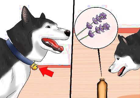 Put scents and sounds on things. When your dog has limited vision, you’ll want to find some ways to make certain items and areas recognizable for him. Using his sense of smell and hearing, you can create signals that let your dog know that something, or someone, is near. The easiest thing to do is add bells to yourself and your family members. The jingling sound helps to let your dog know you are nearby. Consider adding bells to the collars of other dogs, as they are more likely to approach their housemate without talking first. Using scents and odors is another way to help your dog understand where he is. Place flavored extracts, scented oils, colognes, and other smells in important areas like stairs or doorways so your dog can recognize those areas when he gets near them. If you are out of the house, consider leaving on a TV or radio for some additional ambient noise. The extra sound will be familiar to your dog, and help calm his anxiety from not knowing where you are. Plus, knowing there the TV is will help him stay oriented in the house. Outside your home, a wind chime is a nice, unobtrusive addition that can help your dog always “hear” where the house is when he wants to go back.