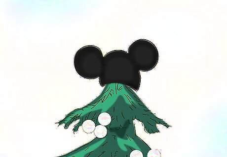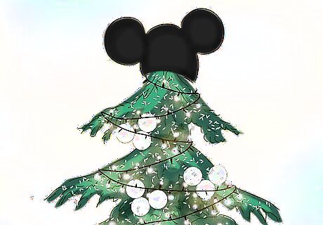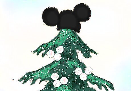 Hang some Disney-inspired ornaments on the tree. Look around the stores for them, or make some classic three-balled Mickey ornaments from three white circular balls with toothpicks to attach them together. Make sure all ornaments you hang have a Disney theme (or have the logo to the Disney item attached to them). Hang heavier ornaments on the bottom and lighter ornaments on top.