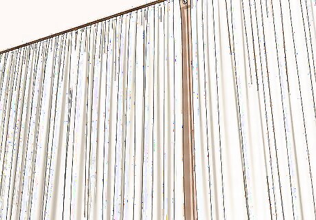 Hang curtain rods along each wall to cover them with colorful drapes. Measure each wall with a measuring tape and install curtain rods to fit every wall in the wood-paneled room. Install your rods and hang distinct and colorful drapes along each wall. This way you can change the overall impression of a room without using any furniture. You can even change out the drapes when you get bored of a pattern or color! This is a particularly good choice for rooms with windows where the drapes won't really seem out of place in normal light conditions. Use a variety of different colors and patterns to add variety to the fabric.