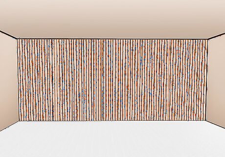 Use paneling as the background for large textiles or antique art. Wood paneling can serve as a good, subtle background for minimalistic flags, elaborate tapestries, or antique art with a large frame. The paneling won't stand out as much in contrast to the impressive, massive piece hanging on your wall. The contrast between the wood grain and your larger piece can also bring the colors out to make it seem more vibrant. Hang your larger piece in the center of wood-paneled wall to put more emphasis on it. For added effect, place some uplights under the piece. Plug in some low-power LED bulbs 1–2 feet (30–61 cm) on the floor on either side of your art or textile.
