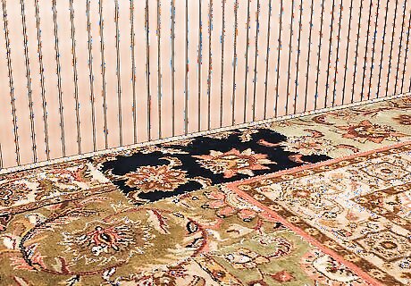 Stick to distinct, bright rugs to keep the focus off of the paneling. Solid-colored rugs will not deemphasize the pattern or texture of wood walls. To draw the eye away from the paneling, opt for patterned rugs with strong color schemes. Fake zebra, distressed Persian, and optical patterns can all make excellent choices in a room with wood paneling.