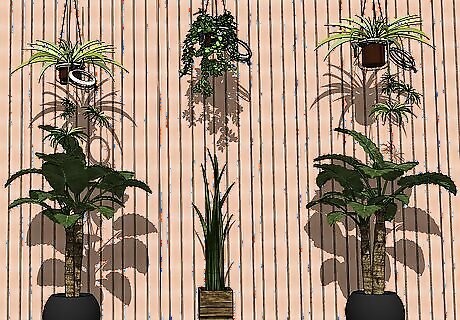 Use a lot of plants to create a rustic or natural look. You can play up the wood paneling by adding a lot of plants to create a naturalistic look. Fill the room with hanging and floor plants to create an earthy vibe. The wood paneling will match the rest of the room and will feel totally appropriate for the style. Mix and match a variety of flowering plants and leafy greens to achieve a color palette that you enjoy.Warning: If the room doesn't have any windows, it may be extremely difficult to keep plants alive if they aren't plastic. This choice is probably best for entryways or living rooms. Succulents and cactus plants are easy-to-grow houseplants you could try.