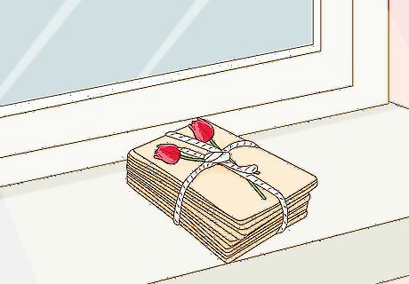 Bundle old pages with twine. Whether you have a book that’s falling apart, or you just want one to look like it is, remove the book’s cover. You can separate the pages completely, or leave them with the spine intact. Wrap some twine around it and display this little vintage package on a bookshelf, table, or windowsill. Tie the twine in a bow and add a dried flower on top for a more feminine decor style.