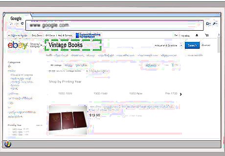 Browse eBay for old books. Auction sites like eBay are a good place to find old books that people want to get rid of. Try searching with the phrase “vintage books” or “set of old books” to find books that are decor-worthy. Verify that the seller will take care to ship them to you in waterproof packaging.