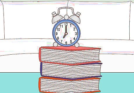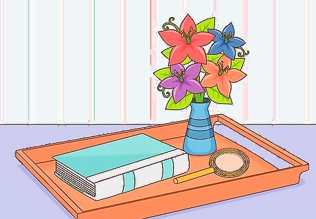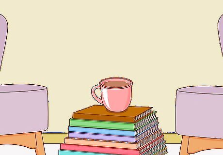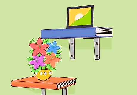 Use books as risers on tables. Place a small stack of two or three books on a side table or coffee table. Then put a lamp, small clock, or candlestick on top of the books. Change how many books are in the stack until you find the level you like best.