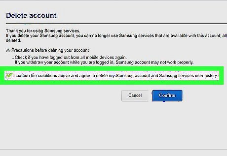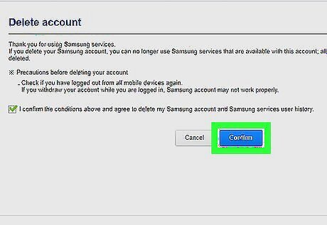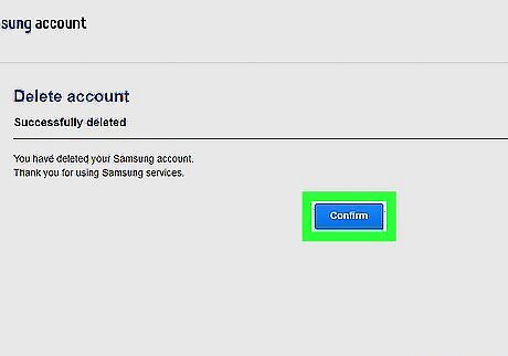 Click the blue Confirm button. This will confirm your decision, and delete your Samsung account.
