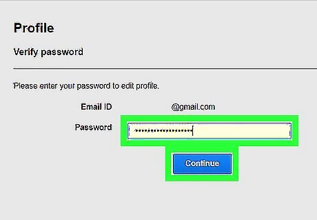 Verify your account password. For security reasons, you'll be prompted to enter your password here again. Enter your account password. Click Continue.