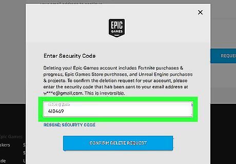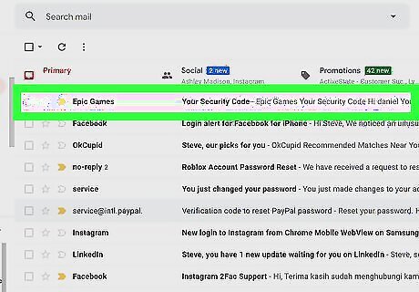 Find the email from Epic Games. Once you confirm that you want to delete your account, you'll need to go to the email associated with your Epic Games account to get a verification code. If you're accessing your email from a web browser, you might need to refresh the inbox a few times to get the email from Epic Games.