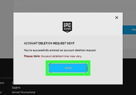 Click Done. When your account is deleted, you'll lose all your progress in Fortnite, the games you've bought from Epic Games, your Epic Games friends list, and any downloadable content, like Fortnite's V-Bucks. Your account page will reflect that account deletion is pending.