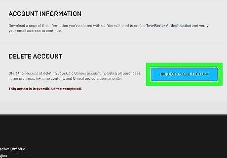 Go to https://www.epicgames.com/account and log in. You can use a mobile or desktop browser to delete your account. If you're already logged in, make sure the account information that is displayed is the correct information for the account you want to delete.