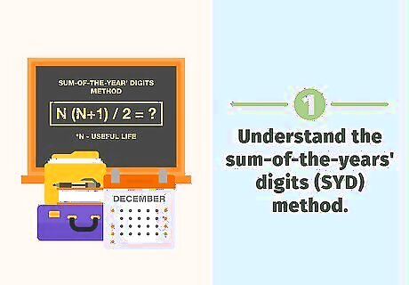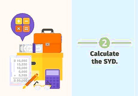 Calculate the SYD. Multiply the useful life by the useful life + 1. Divide this product by 2. Divide the number of years remaining in useful life by the SYD to get the depreciation rate for that year. Using the same example as before, suppose a company purchased a vehicle for $60,000 and the vehicle has a $10,000 salvage value and a five-year useful life. Calculate the SYD. Use the equation 5(5+1) / 2 = 15. Calculate the depreciation rate for year one by dividing the years remaining in useful life by the SYD. In year one, the years remaining in useful life is 5. Use the equation 5/15 = .3333. Apply this rate to the cost of the equipment less the salvage value to calculate the depreciation amount for year one. Use the equation ($60,000 -$10,000) x .3333 = $16,665. Record $16,500 in depreciation expense for year one. Calculate the depreciation rate for year two. In year two, the remaining years in useful life is 4. Divide 4/15 = .2667. Apply this rate to calculate the depreciation. Depreciation is ($60,000 -$10,000) x .2667 = $13,335. Calculate the depreciation rate for year three using the equation 3/15 = .2. Depreciation is ($60,000 - $10,000) x .2 = $10,000. Calculate the depreciation rate for year four using the equation 2/15 = .1333. Depreciation is ($60,000 - $10,000) x .1333 = $6,665. Calculate the depreciation rate for year five using the equation 1/15 = .0667. Depreciation is ($60,000 - $10,000) x .0667 = $3,335. If you add up all of the depreciation rates for the five years, it comes to 100 percent (.333 + .2667 + .2 + .1333 + .0667 = 1). If you add up the total depreciation expense for the five years, it will total the purchase price of the vehicle less the salvage value, which is $50,000 ($16,665 + $13,335 + $10,000 + $6,665 + $3,335 = $50,000).