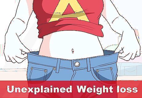 Be on the lookout for weight loss you can't explain. Losing weight without making an effort to do so is another symptom of uterine cancer. For example, if you lose 5 to 10 pounds over the course of 1 to 2 months, that could be a sign that you have uterine cancer. Weight loss in and of itself does not mean that you have uterine cancer. It is a secondary symptom that should only signal uterine cancer to you when combined with other symptoms. Whatever the cause, unexplained weight loss is an issue that you should consult a doctor about.