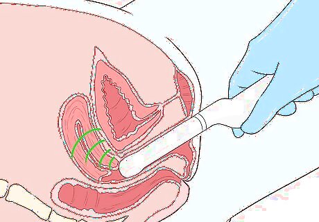 See if your doctor recommends a transvaginal ultrasound (TVUS). A TVUS is commonly used to examine the uterus, especially if external ultrasounds are inconclusive. Your doctor will gently insert the ultrasound wand into your vagina to take pictures of your uterus. They will then examine the pictures of your uterus for tumors or an abnormally thick lining, which can also be a sign of uterine cancer. To have the procedure done, you will be asked to lay down on the exam table. Then you will put your knees up and your feet into the table stirrups, if there are some attached to the exam table. Once you are in position, the doctor will insert the ultrasound wand a few inches into your vagina. Getting a transvaginal ultrasound can be uncomfortable but it shouldn't be particularly painful. If you are experiencing pain during the procedure, tell your doctor so they can find a way to examine you that is less painful.