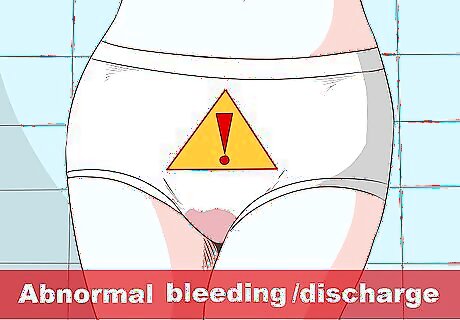 Pay attention to abnormal vaginal bleeding or discharge. Vaginal bleeding after menopause is a common symptom of uterine cancer. Bleeding or spotting between periods may also be a sign of uterine cancer for premenopausal women. Additionally, watery discharge that seems abnormal, even if you cannot see blood in it, may also be a symptom of uterine cancer. If you have abnormal vaginal bleeding or discharge you should make an appointment to be seen by your doctor. These can be symptoms of a variety of health issues, not just uterine cancer, but whatever the cause it is important to get it checked out.