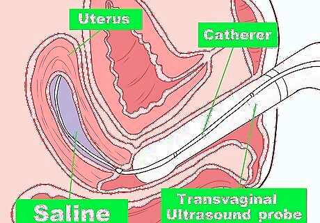 Have a saline infusion sonogram done if other imaging is inconclusive. A saline infusion sonogram is typically used if the other ultrasound tests do not detect a tumor. Your doctor will put a small tube into your vagina that they will use to insert saline into your uterus. The saline will enable your doctor to get a clearer picture of your uterine lining when they do an ultrasound. Once the saline is inserted into your uterus, the doctor will use the transvaginal ultrasound wand to inspect the lining of your uterus for abnormalities.