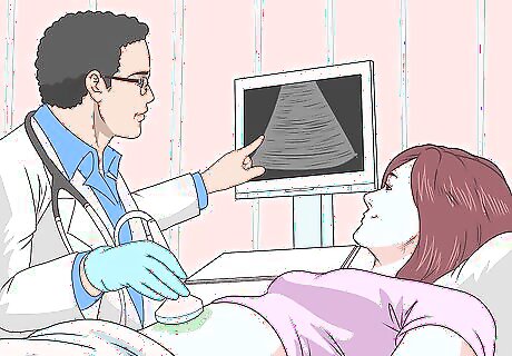 Have a pelvic ultrasound done. A pelvic ultrasound is used to take a picture of your ovaries, Fallopian tubes, and uterus. This is used to help determine the possible diagnosis and see if further testing is needed. Your doctor will first place ultrasound gel on your pelvic region. Then they will move the ultrasound wand around the skin on your lower abdomen to examine your ovaries, Fallopian tubes, and uterus for tumors and polyps. Because the bladder needs to be full to get a good picture, your doctor may ask you to drink a lot of fluids before the exam. The ultrasound may be done by your doctor or an ultrasound technician, depending on if there is an ultrasound machine available in your doctor's office.