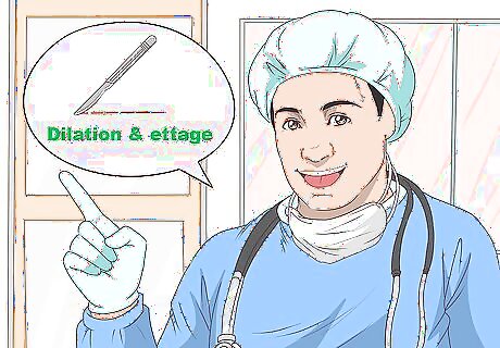 Have a D&C procedure done if other tests are inconclusive. A D&C (dilation and curettage) is a surgical procedure that is more invasive than a hysteroscopy. During this procedure, your cervix is dilated and a spoon-shaped instrument, referred to as a curette, is used to scrape tissue from the inside of your uterus. A pathologist will then examine the tissue to see if cancer is present. To perform this procedure, the doctor will give you either local or general anesthesia. A D&C is an outpatient procedure that is done at a local clinic or hospital. However, following the procedure, you may need to stay in the clinic or hospital for a few hours before being released. During that time the medical staff will make sure you are recovering correctly from the procedure and the anesthesia.