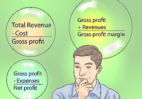 Know the difference between gross profit, gross profit margin, and net profit. Gross profit is your total revenue earned from your goods or services, minus the cost of producing or providing those goods or services (COGS). This calculation does not include expenses like payroll, rent, or utilities; it only considers the cost directly related to creating those goods and services. Gross profit margin is the gross profit divided by revenues. Net profit takes all business expenditures into account and is calculated as gross profit minus administrative expenses and other relevant expenses. This includes regular operational costs (payroll, rent, etc.) and one-time costs (taxes, contractor invoices, etc.). You must also include any additional earnings, such as investment income. Net profit provides a more complete and detailed rendering of the business health and is generally what is used to manage the business. The steps below detail how to find this number. Net profit is also known as "the bottom line."
