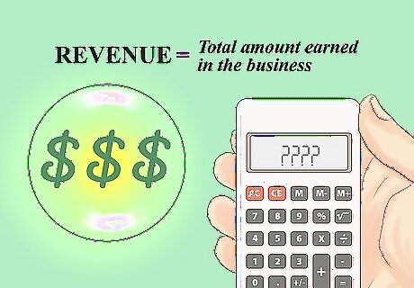 Calculate the total revenue generated by your business during the calculation period. Revenue is everything the business brings in through sale of goods, services, or earnings of interest. If your business only sells goods, such a retail shop or restaurant, your total revenue is all the sales you had during the period you've chosen to analyze minus any returns or discounts. If you don't already have this figure on hand, multiply the total number of items you sold by the price of each of those items and then adjust for returns and discounts. Similarly, if your business provides services, such as lawn mowing, your total revenue is all of the amounts you collected for your services during a period. Finally, if the business involves owning securities, you should include the interest and dividend income from those sources in your total revenue calculation.