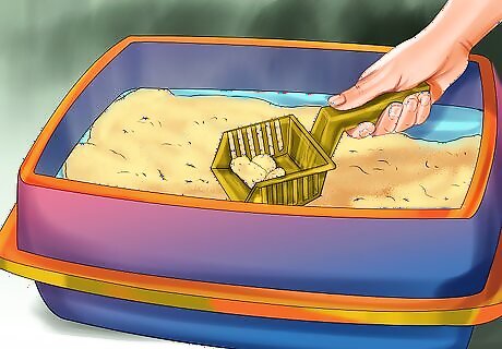 Clean your cat’s litter box regularly. Check your cat’s litter box twice a day for waste. Use gloves to remove the waste and place it in zip-lock bags for added protection before throwing it away. Re-fill the litter box with fresh litter. Make sure to wash your hands with soap and water afterwards. Clean your cat’s litter box with hot water and a mild soap once a week.