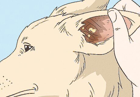 Examine the ear to check for brown, yellow, or bloody discharge. You may notice either wet or dry discharge. At first, the discharge may just appear deep inside the ear, but it could also be dripping out. If you don't see discharge, that doesn't mean that the dog doesn't have an infection. If the dog has other symptoms, it's best to take the dog to the vet.