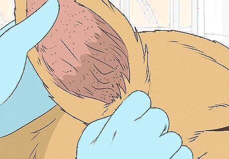 Look for swelling, redness, or scabs. Compare the dog’s affected ear to the other ear to check for swelling and redness. It’s normal for the ear to be pink, but a deep red could mean an infection. You may also notice scabbing, especially if the dog has been scratching its ear.