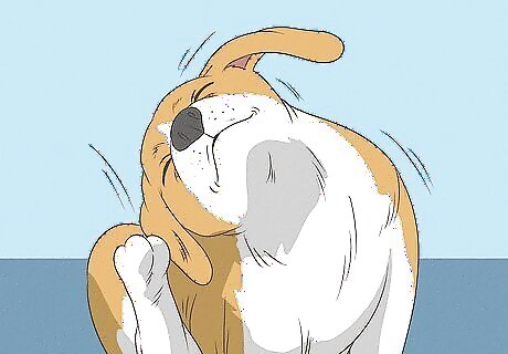 Watch for head shaking or tilting. Your dog could be doing this because it's feeling discomfort. It could be a back-and-forth motion, or you may just see the dog holding its head to one side. This can also be a symptom of ear mites. Either way, it's best to take the dog to the vet.