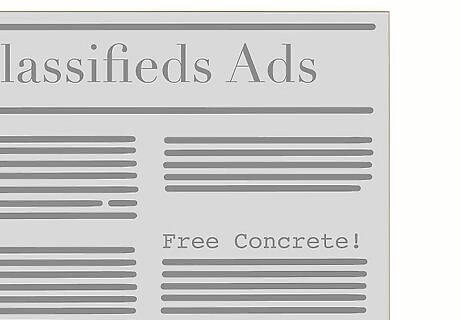 Take out a classified listing in your local newspaper. There may be a contractor or non-profit group in your area who could use your concrete. Paying for an ad in your local newspaper would be cheaper than hiring a removal company, and you’ll be able to help someone who needs it. List the concrete as free in the ad description. Contact a local newspaper to find out how much they charge for classified listings. Include your contact information so any interested parties can reach you.