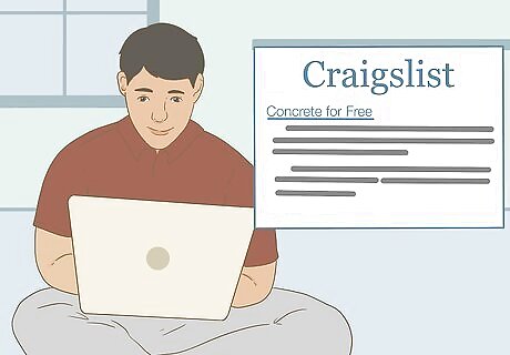Place the concrete on the road with a sign that says, “Free.” You can put your concrete out by the road in front of your house with a sign so people driving by will know it’s free and available to be picked up. Eventually, someone interested in taking your concrete may stop by with a truck or trailer and load it up. Check your local laws before you place your concrete by the road to make sure you can do so.