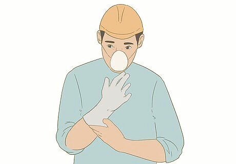 Put on a face mask and work gloves before you handle concrete. Concrete dust can be hazardous if you breathe it in. In addition, concrete is bulky and can have sharp edges that could potentially cut you. Always put on safety equipment before you start to handle or move concrete. You can find thick work gloves and face masks at home improvement stores, department stores, and online. Make sure the face mask fits snugly around your nose and mouth.