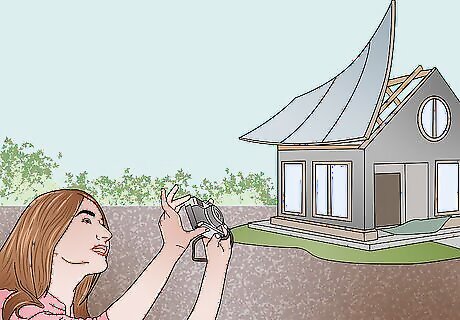Take photos of all damage. Take photos of any damaged property as soon as possible after it is discovered. Walk around inside and outside your home with a camera or your cell phone and take photos of everything so you have a record of all damages.