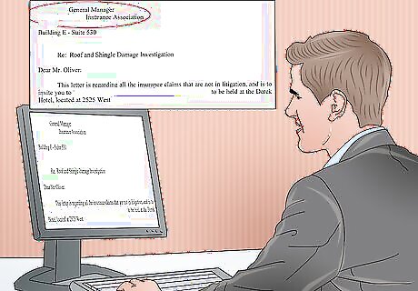 Write a letter to a manager. If you can't get anywhere with the adjustor, you may be able to write a formal demand letter to someone higher up. In your letter, explain the event that gave rise to your claim, the reasons you were given for the denial of your claim, and why you believe that decision was in error. Include documentation or other evidence that backs up your argument, or indicate that you already have made that information available to the company. Include your policy number, your claim number, your current contact information, and any other information you think would help the person resolve your dispute more quickly.