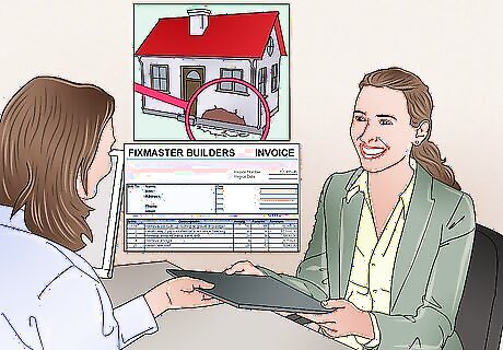 Avoid making permanent repairs immediately. Except for repairs that are essential for you to live in your home, you shouldn't repair or replace anything in your claim until the dispute is resolved. Although you may need to make some temporary repairs to make your home safe or protect it from further damage, it's important to preserve the scene so your claims adjuster can see the extent of the damage. For example, you might place a tarp over a hole in your roof to prevent rain from getting into your home and causing further water damage. Keep receipts for any repairs you do make and add the amounts to your claim. Make sure you have at least two estimates for any repairs before you have any work completed. Your insurance company may deny your claim or only pay part of your claim if you don't have several estimates to prove you didn't overpay for the repairs.